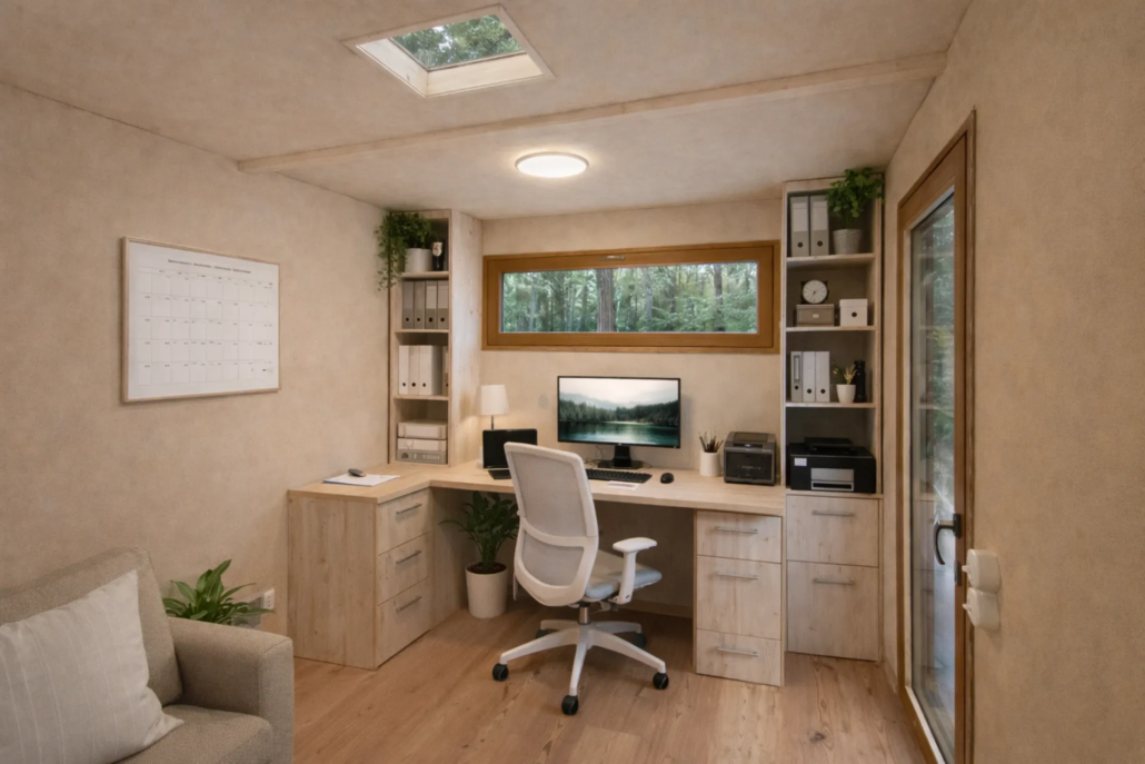 Kompakter Raum, maximale Funktionalität im Tiny House Office